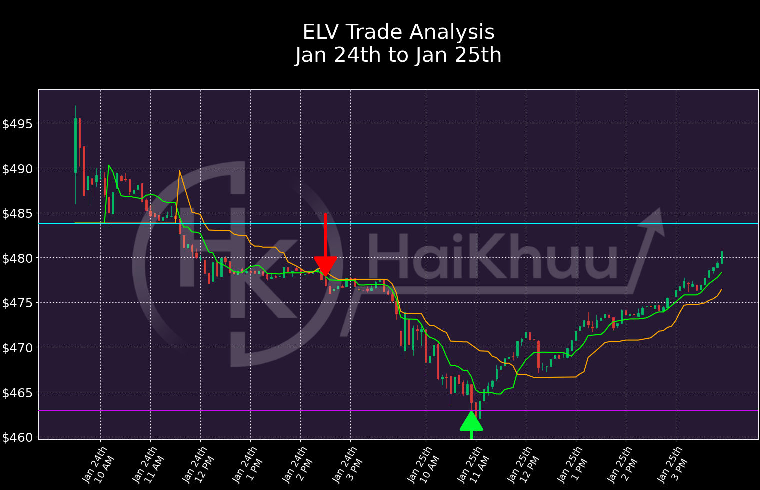 On the 24th, we went short on $ELV at $476.86, before hitting our target exit price of $462.92, for a profit of 2.92%