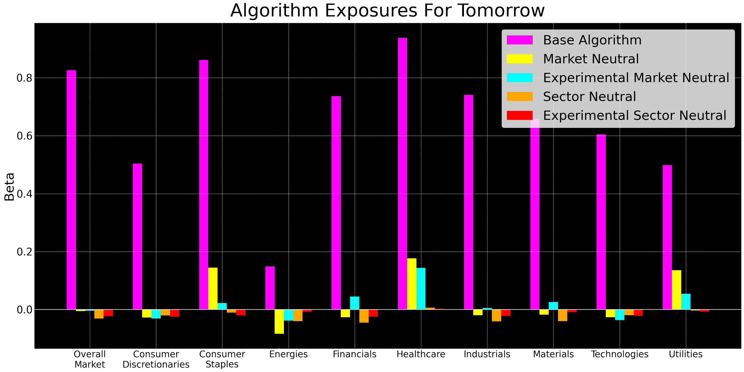 The full algorithm reports will be published tomorrow morning, once Allen has had a chance to vet its recommendations. In the meantime, here are our tentative exposures for the trading day tomorrow: