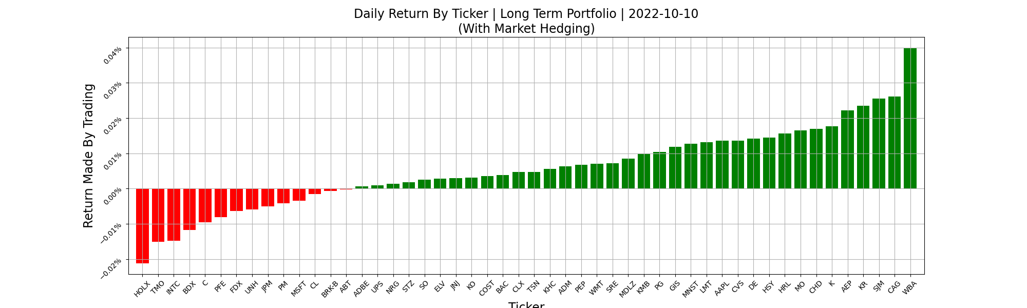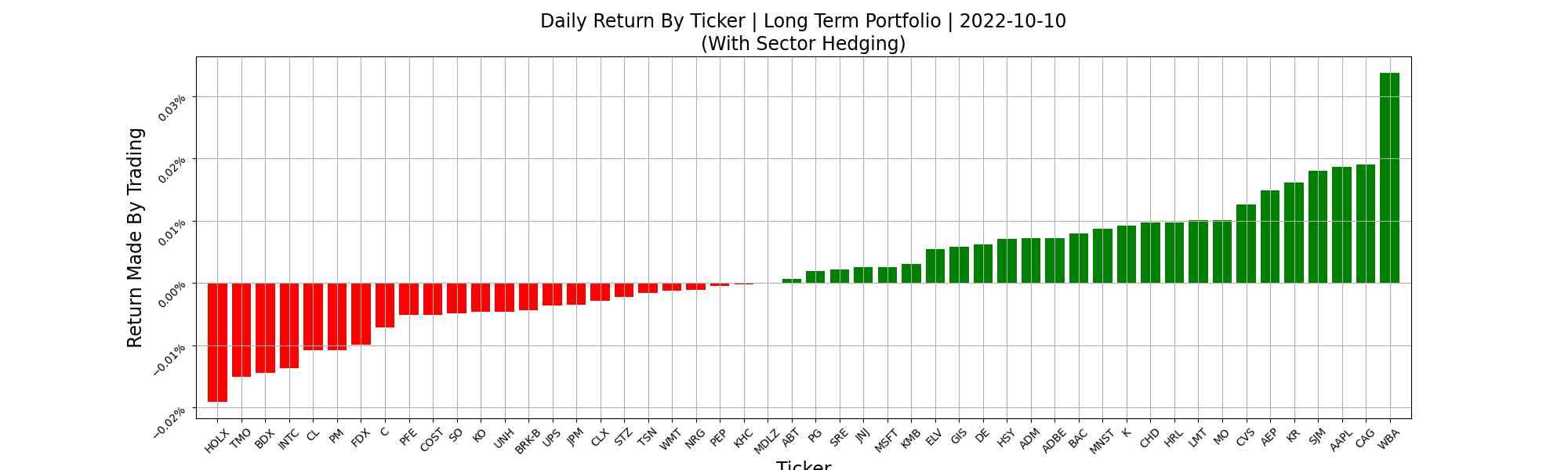 The first reason is that sector hedging was less effective than market hedging. We don’t see this too often, but it does happen. Sector hedging most tickers today would have beaten the market, but you would have done better with our portfolio if you only market hedged. This is the first reason the market hedgers beat the sector hedgers today.
