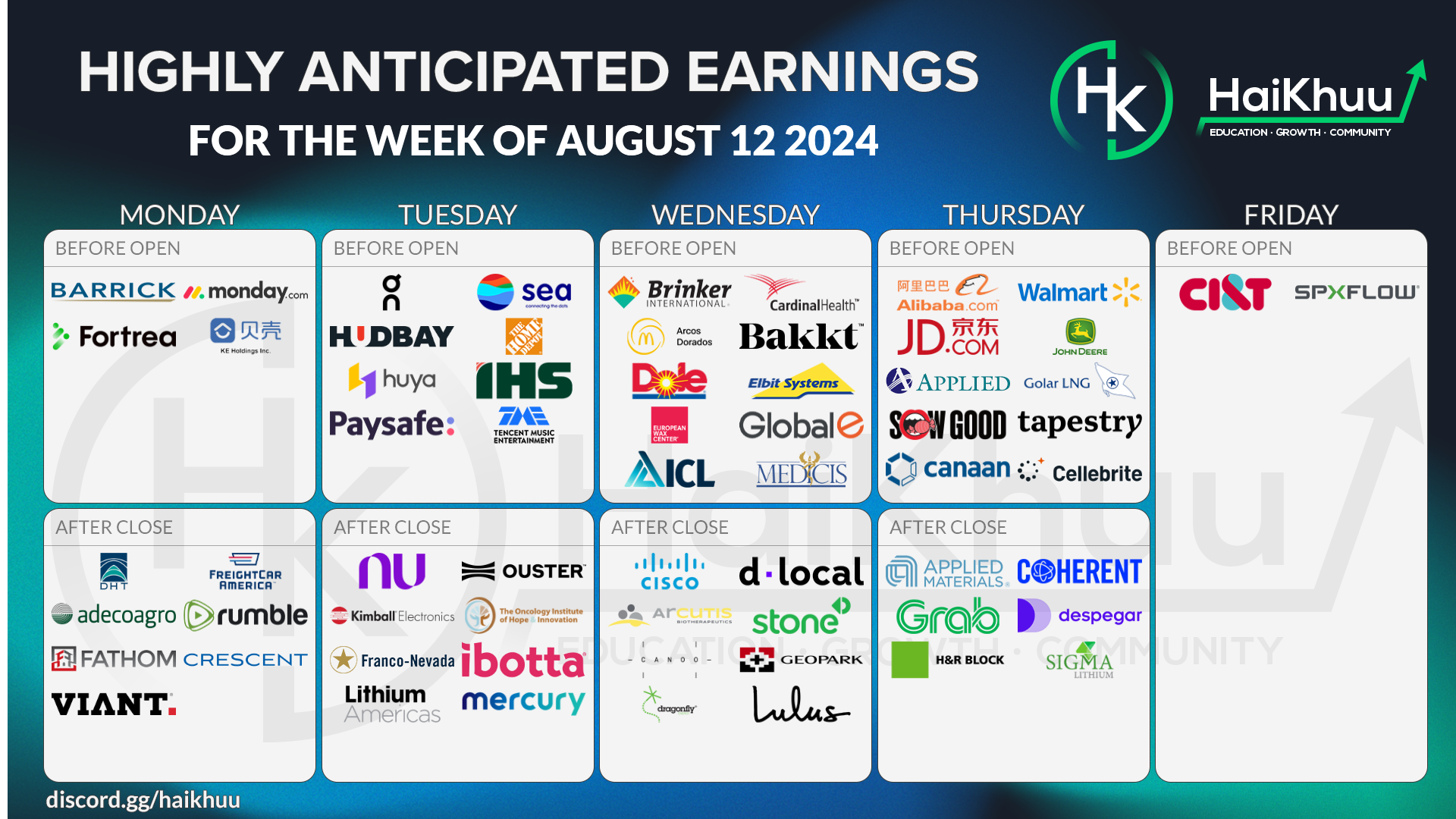 PM Earnings: Applied Materials (AMAT), Coherent (COHR), Grab Holdings (GRAB), Despegar.com (DESP), H&R Block (HRB), SIGMA Lithum Corporation (SGML)