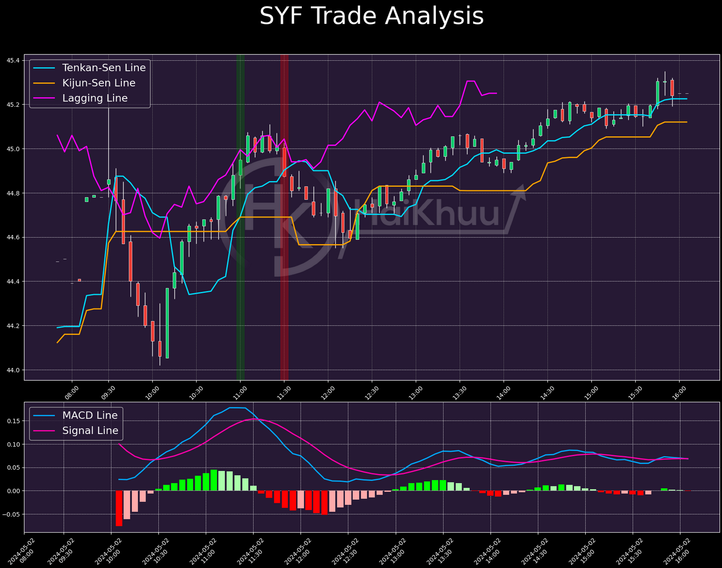 The only other trade I want to discuss today is this long on SYF, as another loser that, while easy to mitigate, was difficult to avoid entirely. This one lost us 0.17%. All of the signs are present going into this trade. The cross is fairly strong, with both TK-lines sloping upwards at our time of entry. In addition, the MACD is great, the lagging line is cooperative, and the momentum is extremely bullish. This is, unfortunately, just a trade that didn’t work out.