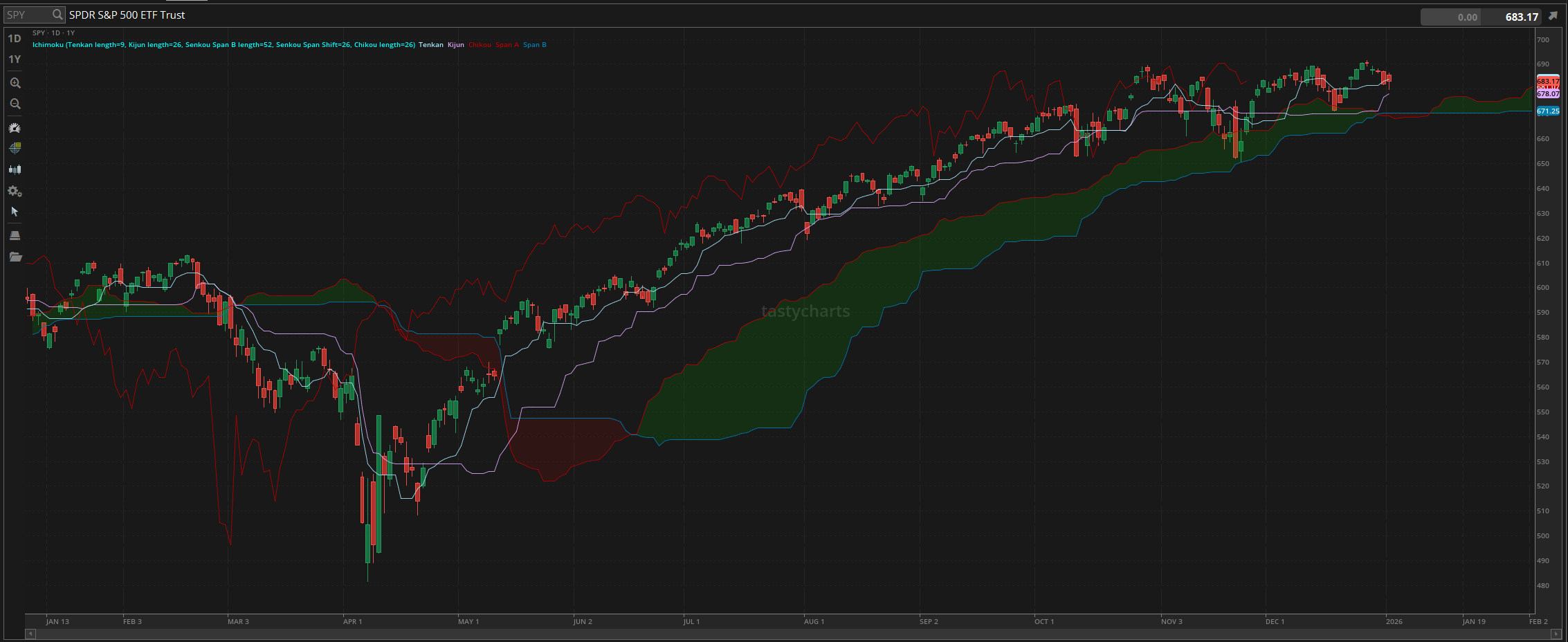Conditions continued to slightly weaken through the rest of Tuesday, selling off once again, leading into Wednesday, which was the end of the year. We officially ended 2025 with $SPY trading at $681.92, up $97.28 for the year, or up roughly 16.6%.
