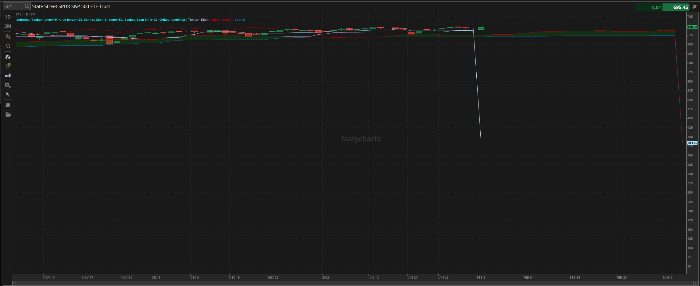 That singular fill resulted in technical analysis on a larger scale being impacted, where you will see levels of support drop heavily as a result. This hopefully should be fixed by the end of the day as brokerages remove that mark, but expect your technical analysis on a larger scale to show irrational marks that are not valid.