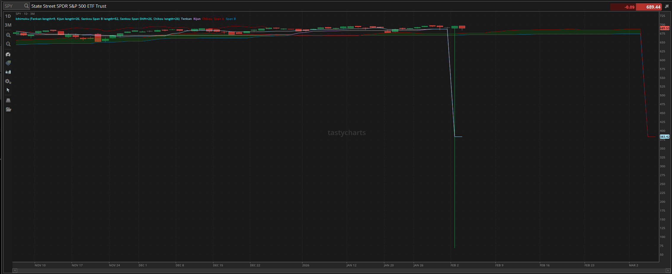 Conditions were gross despite the news that the “partial” government shutdown has ended, and watched as $SPY bounced from the bottom. $SPY went on and made the official low of the day trading at $684.04. Things at the bottom were absolutely disgusting as $SPY dropped almost $13 in the process, but thankfully in the back half of the afternoon, the markets recovered slightly, where we went on and officially ended the day with $SPY trading at $689.53, down about $6 for the day, or down 0.85%.