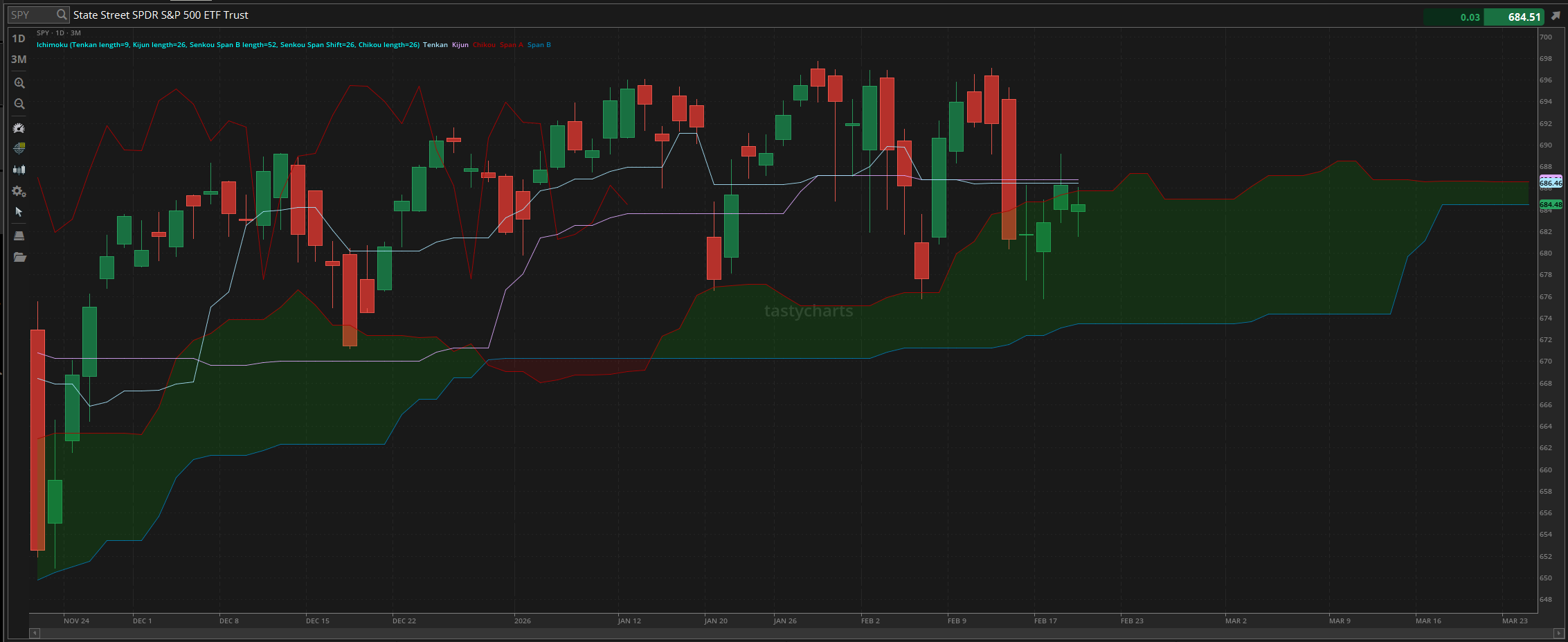Currently, $SPY is trading in the daily cloud, and right below both the baseline and conversion line resistance. We are seeing a minor sign of a bearish reversal on the $SPY daily, but I genuinely do believe there is a high likelihood that this is a fake-out. All we need is bullish market sentiment that pushes the markets higher in the short term, or a single headline to trigger a breakout. That would be absolutely beautiful, but at the same time, with all of the resistance we are seeing towards the upside, it is almost hard not to be a little skeptical. All we need for the markets to come crashing down is simply getting one headline that is less than ideal, or a single catalyst to cause an organization to start selling off, resulting in the rest of the markets coming down too.