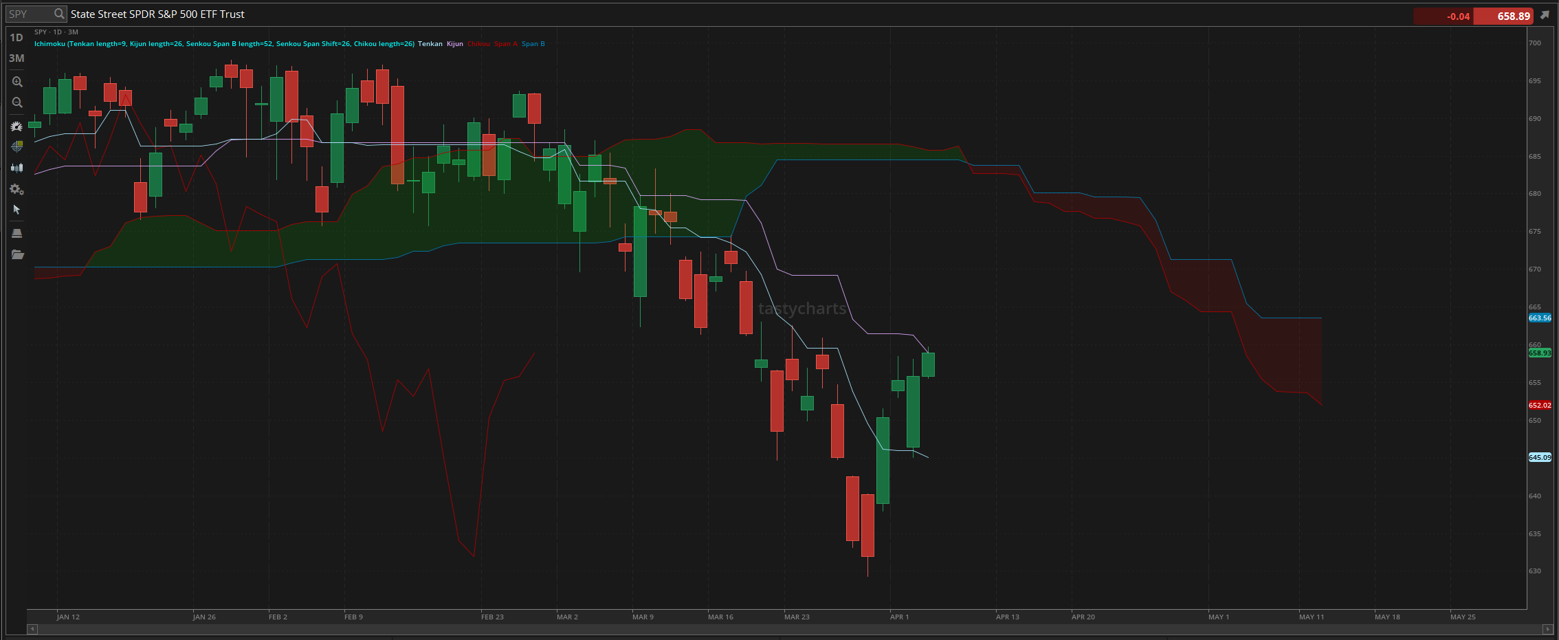 With the confusion that people are experiencing right now. There is going to be a lot of fear in the markets. Fear in the markets is not necessarily a bad thing, as it provides us with an opportunity to trade with confidence and gives us some opportunities to take advantage of a discount. With the way the markets are looking, $SPY is testing the $660 magnet zone, we have broken above the daily conversion line, and are testing the baseline resistance at the moment. If everything continues to go the way that it is, traders are still in extreme fear on the fear and greed index. A lot of what I just said sounds bearish and a little bit scary, but if I am being honest, if you are a strong trader, you should honestly hear everything I say, and the only words that should come to mind are “opportunity”.