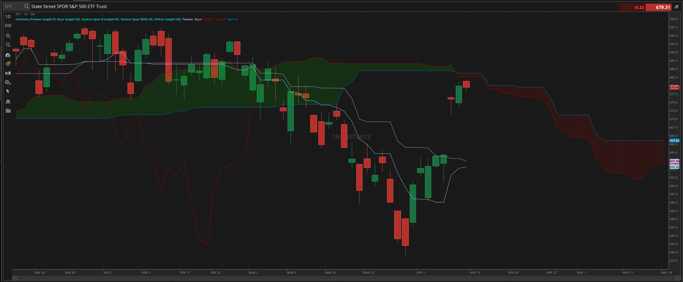 Wednesday was an absolutely beautiful day for the markets as overall we essentially retained that position and remained relatively strong through the day, which was followed up by more strength on Thursday, before we watched as $SPY had mild bearish momentum on Friday, rejecting the daily cloud resistance and the $680 resistance point.