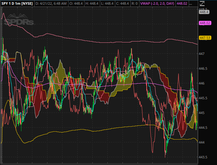 $SPY 4/20/2022 ONE MINUTE INTRADAY CHART