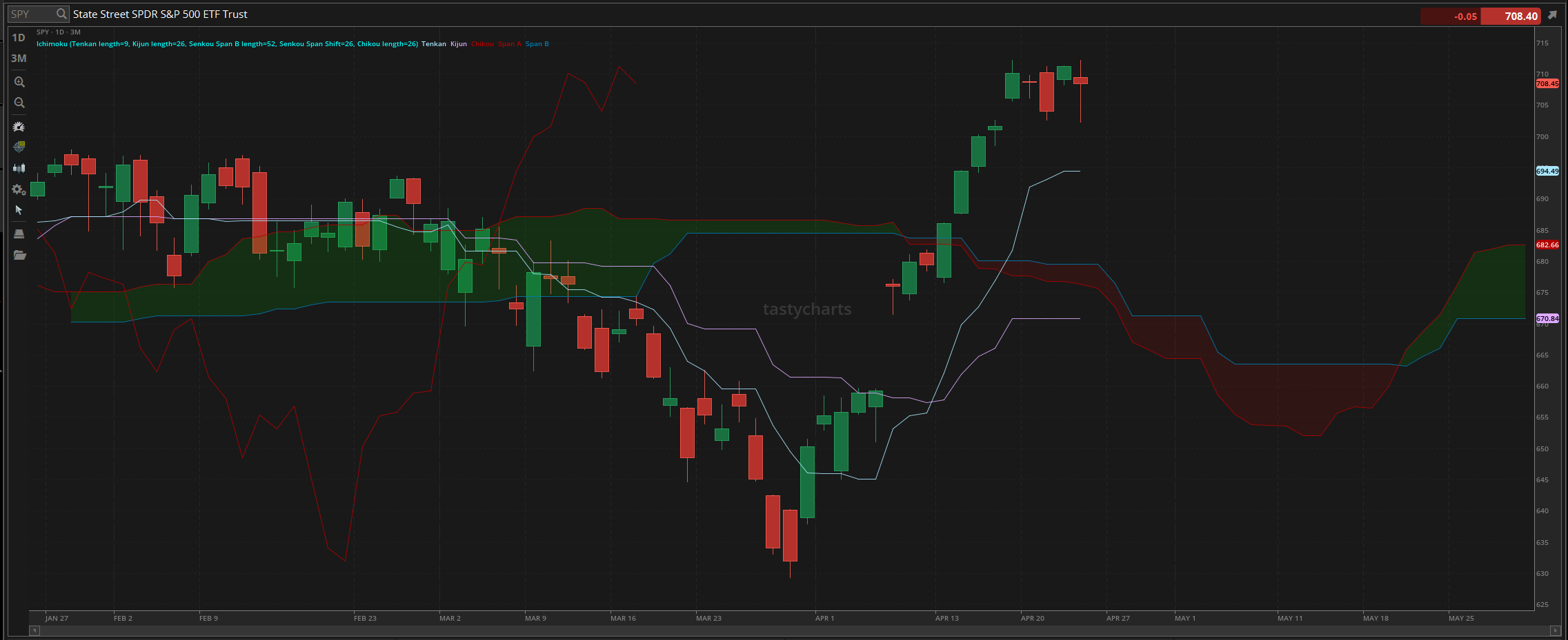 Nothing happened until the early afternoon when wartime news headlines hit the markets, and watched as everything quickly came plummeting down, and watched as $SPY went on and made the official low of the day, trading at $702.29 before having an opportunity to bounce back up, leading into the back half of the trading day.