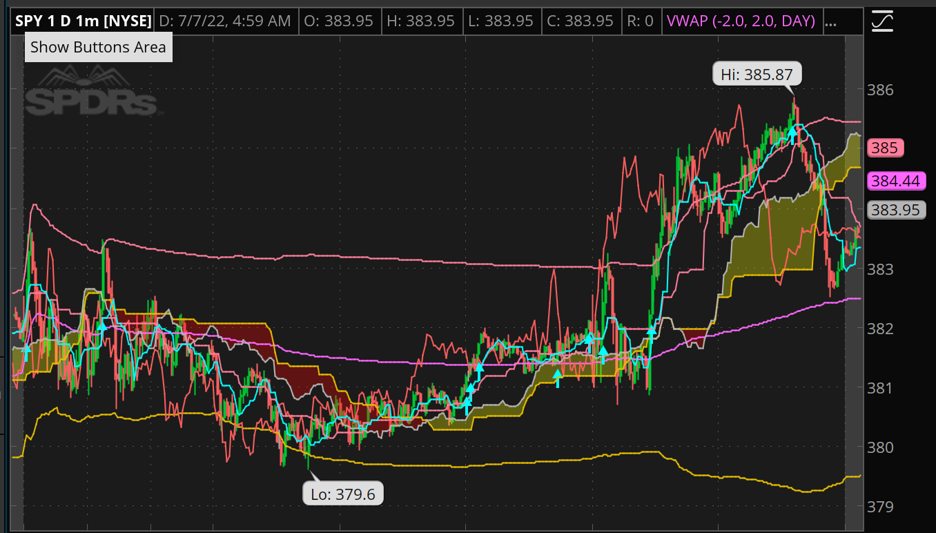 $SPY 7/06/2022 ONE MINUTE INTRADAY CHART