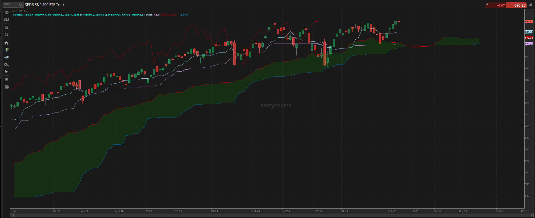 Last week was a short and hectic week for the markets. We went into the week knowing that it would be impacted heavily, with a half day on Christmas Eve, and Christmas Day off, resulting in a 3.5-day trading week, which realistically was a two-day trading week. Volume was slow, there was significant neutrality, but we saw a beautiful continuation of the strength we’ve seen over the previous couple of weeks, with $SPY making a NEW all-time high in the process! I hope you all had a great week and realized some gains!