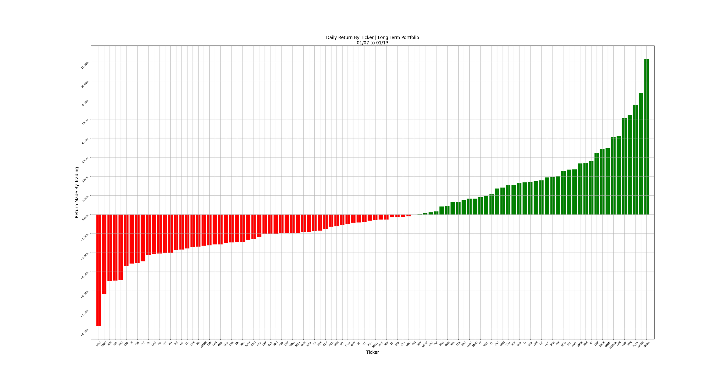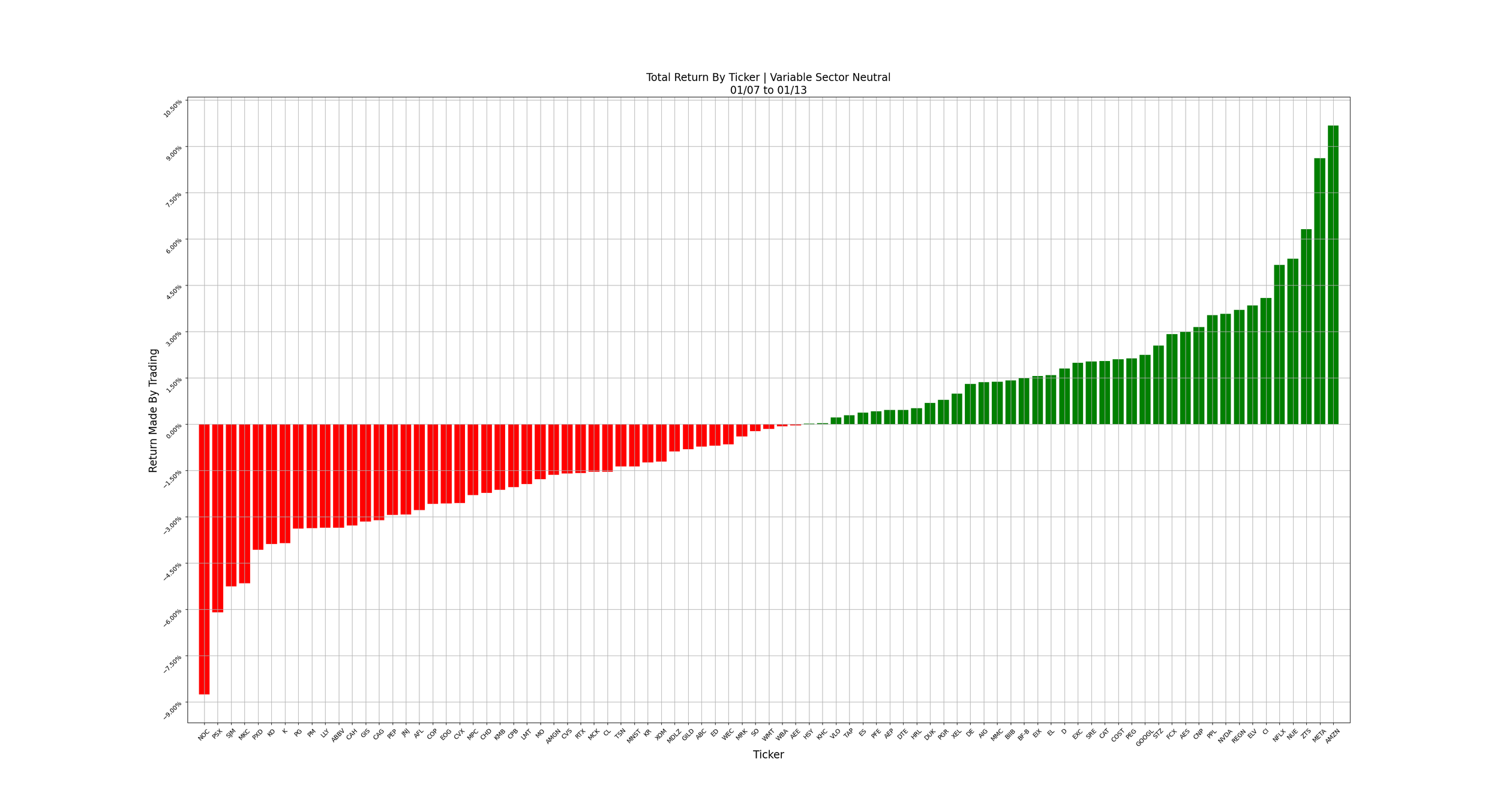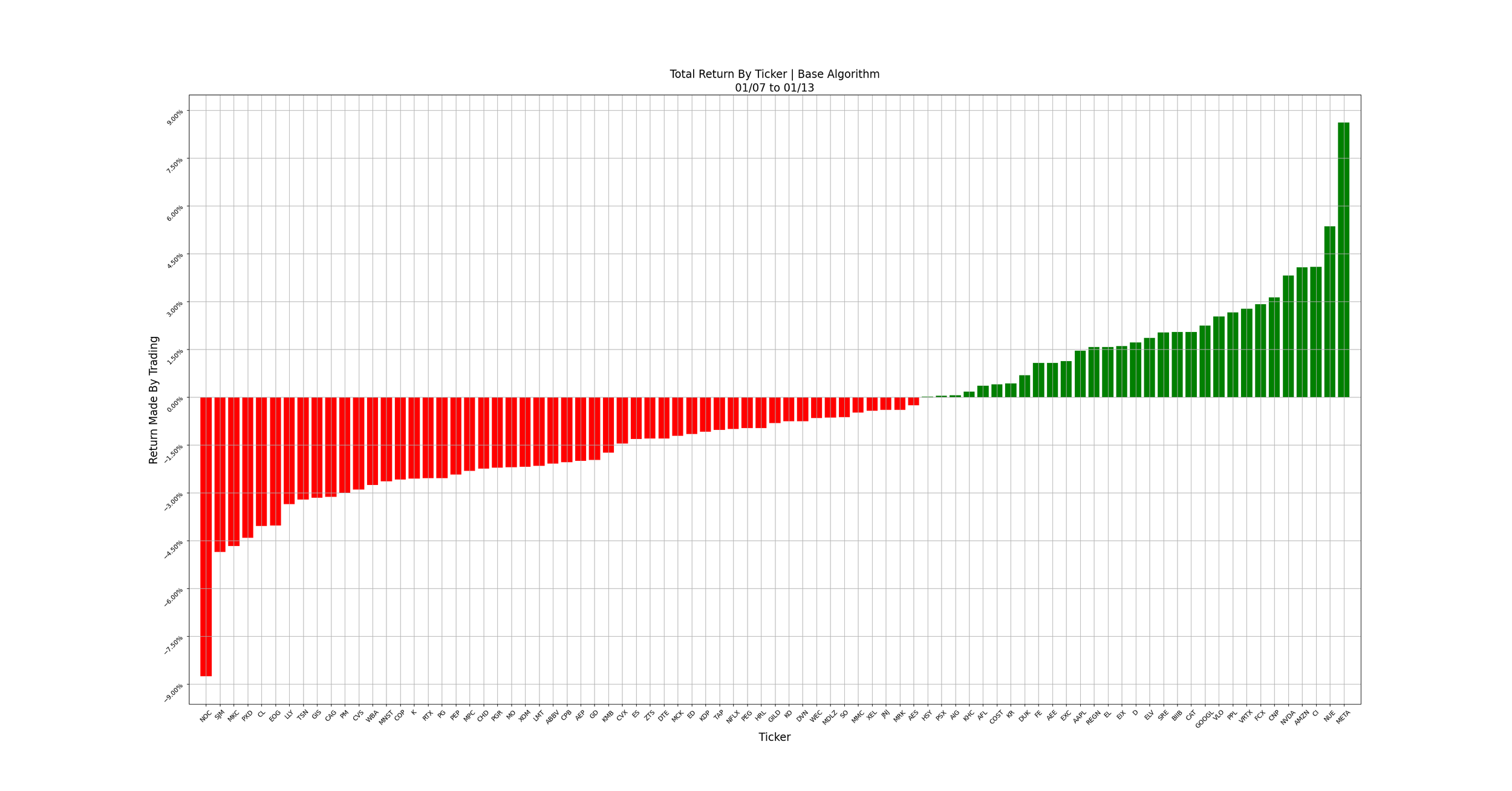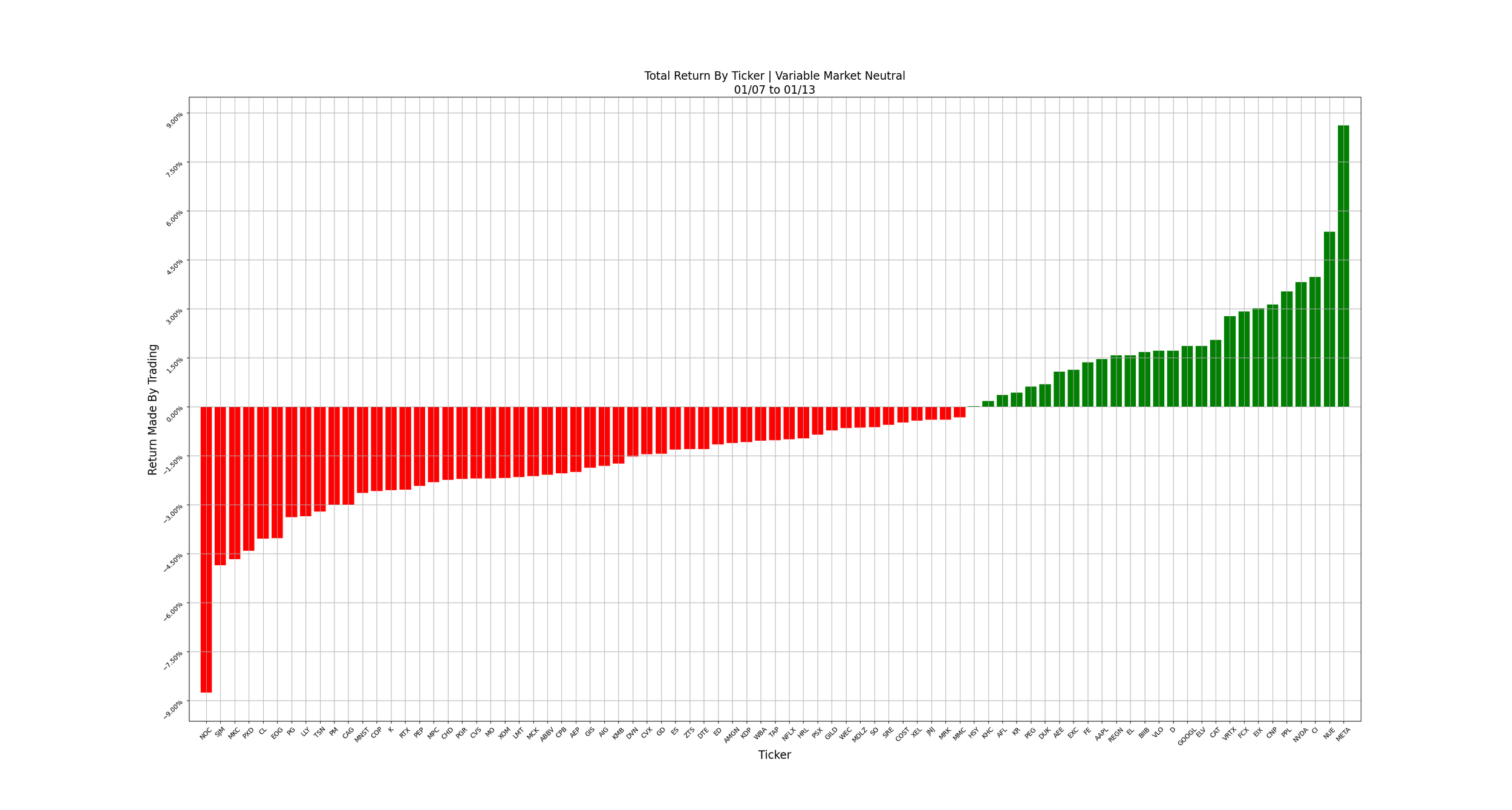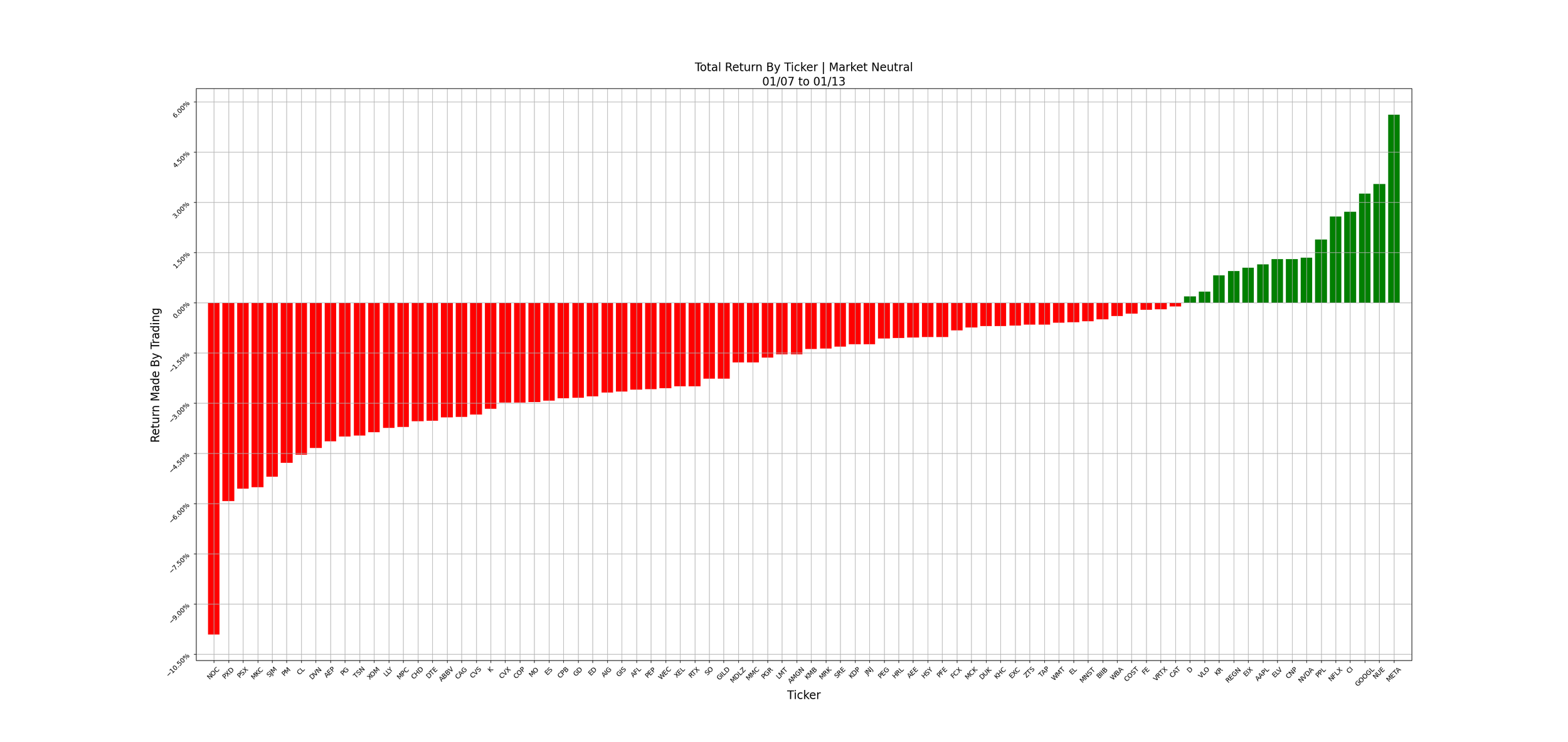 This backtest was run from July 2022 to January 2023, with the new portfolio we’ve adopted. There is some selection bias here, since these are tickers chosen based on their standing at the end of the test rather than the beginning, but there isn’t any other data to run this on. The results were: