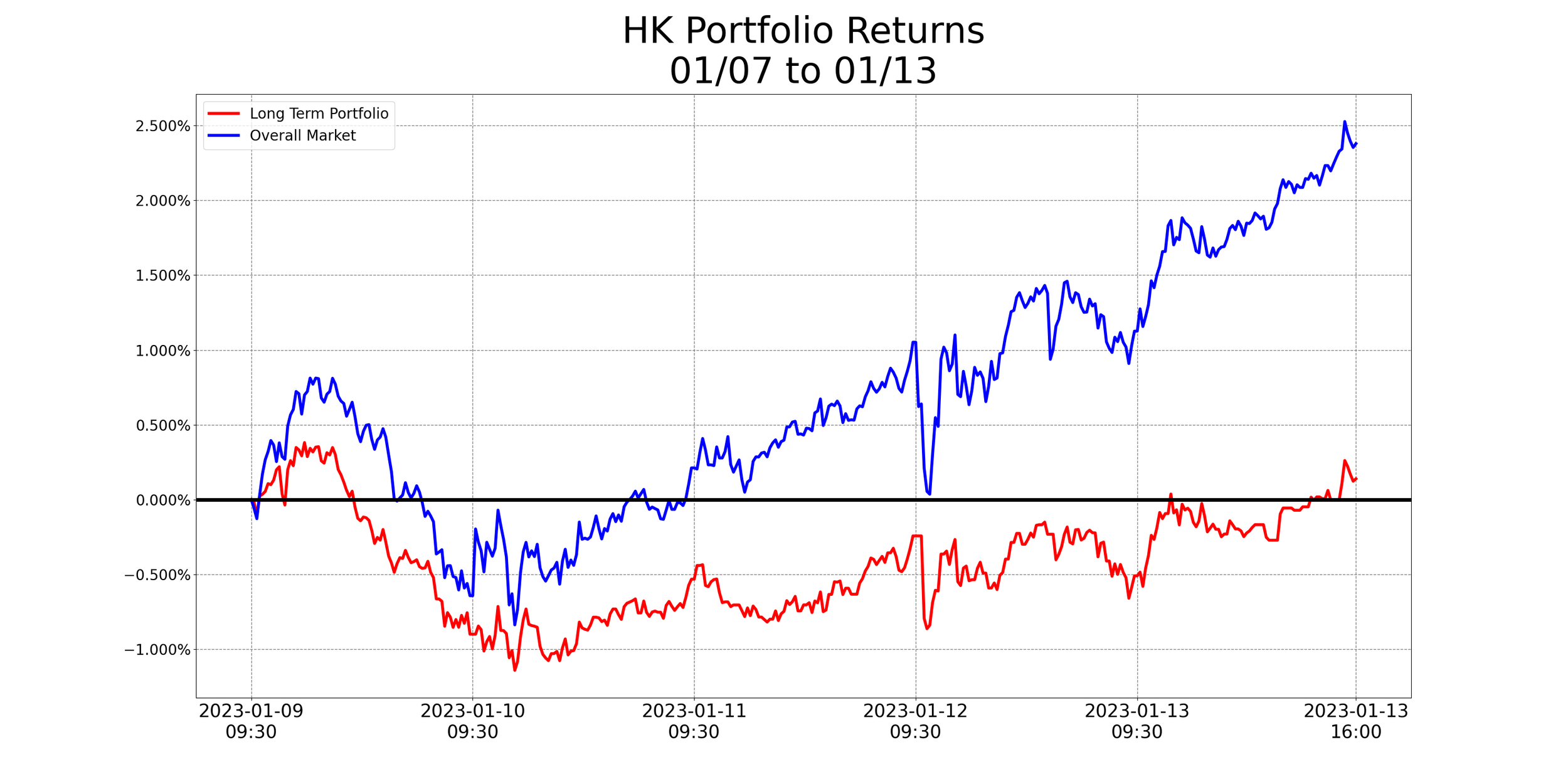 This was our first week fully utilizing our new portfolio, and it was a bad week. Our long term portfolio underperformed by more than 200 bps, and our base algorithm underperformed that by another 75 bps.